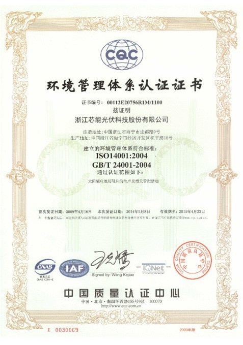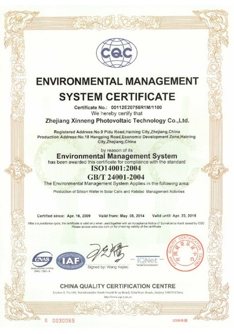 公司通過ISO14001:2004環境管理體系認證 2009-04-16 00:00:00 浙江芯能光伏科技股份有限公司 瀏覽次數 7115 上一條公司通過ISO9001:2000質量管理體系認證 下一條浙江省科技廳常務副廳長壽劍剛蒞臨我司調研