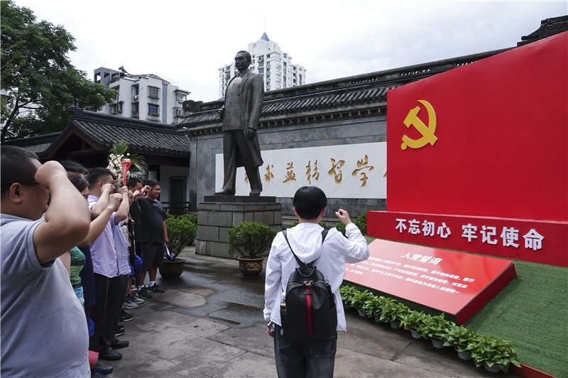 黨員們的第一站來到了周恩來祖居,面向黨旗鄭重宣誓并合影留念,習近平總書記說過:“周恩來是近代以來中華民族的一顆璀璨巨星,是中國共產(chǎn)黨人的一面不朽旗幟”,黨員們在周總理身上學習到了中國共產(chǎn)黨人的崇高精神,感染這一代又一代中國共產(chǎn)黨人,黨員們來到這里,就是要在工作、學習、生活中學習他的優(yōu)秀品德,發(fā)揚他的優(yōu)良傳統(tǒng),傳承他的精神風貌。