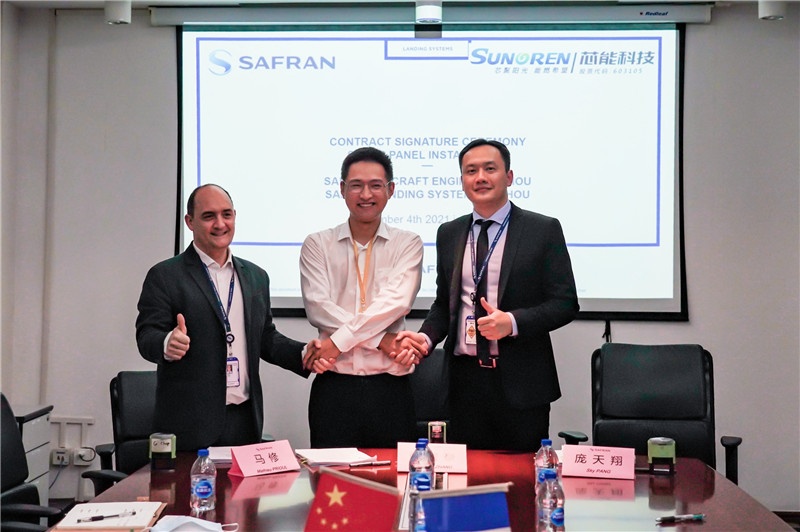 2021年11月5日,芯能科技與賽峰飛機發動機(蘇州)有限公司、賽峰起落架系統(蘇州)有限公司分布式光伏發電項目合作簽約儀式在蘇州舉行。芯能科技總經理張震豪,賽峰飛機發動機(蘇州)有限公司總經理馬修,賽峰起落架系統(蘇州)有限公司總經理龐天翔出席并見證簽署分布式光伏發電項目合作協議。