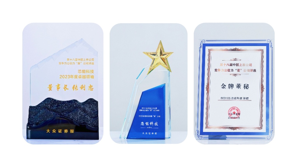 近日,由《大眾證券報》主辦的“第十八屆中國上市公司競爭力公信力‘星’公司評選”獲獎榜單正式發(fā)布。芯能科技(603105.SH)榮獲2023年度綠色發(fā)展“星”公司;董事長張利忠先生榮獲2023年度卓越領袖;副總經(jīng)理兼董事會秘書張健先生榮獲2023年度金牌董秘。